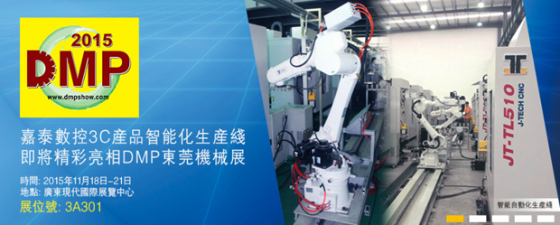 第十七屆東莞國際模具、金屬加工、橡塑膠及包裝展(以下簡稱“DMP東莞機(jī)械展”)將于2015年11月18日至21日在廣東現(xiàn)代國際展覽中心舉行。DMP東莞機(jī)械展已成為機(jī)床行業(yè)下半年度重要的盛會(huì),該展覽會(huì)被譽(yù)為下半年度華南地區(qū)的一次重大饕餮盛會(huì),輻射以廣東、深圳為主的珠三角地區(qū)以及周邊廣西、湖南等多個(gè)省份,獲得國內(nèi)外參展商以及觀眾的一致好評,在廣深區(qū)域已成為一年當(dāng)中首屈一指的大型展會(huì)。 嘉泰數(shù)控致力于為客戶提供智能手機(jī)金屬殼、手機(jī)及平板電腦液晶玻璃鏡面等精密加工的整體解決方案。針對3C產(chǎn)業(yè)、電子通訊行業(yè)的智能化自動(dòng)生產(chǎn)線,即將亮相DMP東莞機(jī)械展。 嘉泰數(shù)控的智能自動(dòng)化生產(chǎn)線將在DMP東莞機(jī)械展期間,帶給你一個(gè)智能手機(jī)金屬殼、手機(jī)屏幕精密加工的神奇“智造”之旅!智能機(jī)器人配合自動(dòng)上下料,多工件同步試加工,全面詮釋嘉泰數(shù)控機(jī)床 的“高效率、高剛性、高精度、高穩(wěn)定性”品質(zhì)魅力。
