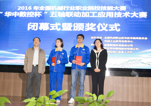 一場(chǎng)才智與體力的“比拼廝殺”,四項(xiàng)五軸數(shù)控專業(yè)高技能的“終極考驗(yàn)”,五臺(tái)高速高精度五軸數(shù)控機(jī)床的“電光火石”,二十支國(guó)內(nèi)機(jī)械高校隊(duì)伍的“華山論劍”,為期五天的“華中數(shù)控杯”五軸聯(lián)動(dòng)加工技術(shù)應(yīng)用大賽終于在嘉泰數(shù)控產(chǎn)業(yè)園落下帷幕,經(jīng)過(guò)激烈的角逐,最終來(lái)自武漢市第二輕工業(yè)學(xué)校和湖南工業(yè)職業(yè)技術(shù)學(xué)院分別斬獲中職組和高職組的冠軍,贏得五軸技術(shù)大賽“王者”頭銜!而中職組的蘭州市工業(yè)職業(yè)技工學(xué)校兩組選手分列二、三等獎(jiǎng);高職組的遼寧建筑職業(yè)學(xué)院、福州職業(yè)技術(shù)學(xué)院、常州輕工職業(yè)技術(shù)學(xué)院、湖南工業(yè)職業(yè)技術(shù)學(xué)院、長(zhǎng)春職業(yè)技術(shù)學(xué)院、泉州信息工程學(xué)院的幾組選手,分別獲得二、三等獎(jiǎng)。![]() 圖:全國(guó)機(jī)械職業(yè)教育教學(xué)指導(dǎo)委員會(huì)秘書(shū)長(zhǎng)、機(jī)械工業(yè)教育發(fā)展中心副主任鄭麗梅(右)和泉州市洛江區(qū)委常委組織部部長(zhǎng)廖曉凌(左)為一等獎(jiǎng)獲獎(jiǎng)?wù)哳C獎(jiǎng) 圖:嘉泰數(shù)控科技股份公司董事長(zhǎng)蘇亞帥(左)和武漢華中數(shù)控股份有限公司副總裁熊清平(右)為二等獎(jiǎng)獲得者頒獎(jiǎng) 2016年11月22日-26日舉辦的2016年全國(guó)機(jī)械行業(yè)職業(yè)院校技能大賽--五軸聯(lián)動(dòng)加工技術(shù)應(yīng)用大賽是中國(guó)機(jī)械行業(yè)職業(yè)院校的頂尖賽事,而五軸數(shù)控機(jī)床在各技術(shù)層面處于數(shù)控機(jī)床行業(yè)“金字塔”的王者頂端,而參賽的選手均是全國(guó)各職業(yè)院校的“佼佼者”,這就是本次“不同尋常”的大賽高規(guī)格和高水平。
