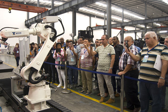 古巴專家團(tuán)參觀“3C產(chǎn)業(yè)手機(jī)金屬外殼加工的自動化生產(chǎn)線”及“數(shù)字化工廠”