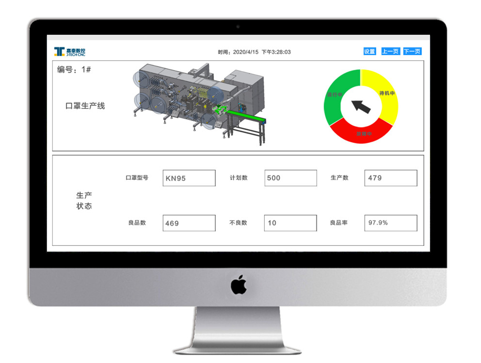 特點(diǎn)2:高度智能化 互聯(lián)網(wǎng)遠(yuǎn)程運(yùn)維、監(jiān)控和管理,云監(jiān)控系統(tǒng)對(duì)設(shè)備進(jìn)行實(shí)時(shí)監(jiān)控口罩的質(zhì)量、產(chǎn)量和設(shè)備狀態(tài),并實(shí)時(shí)反饋給管理人員,高度智能化為產(chǎn)品質(zhì)量和產(chǎn)能保駕護(hù)航。