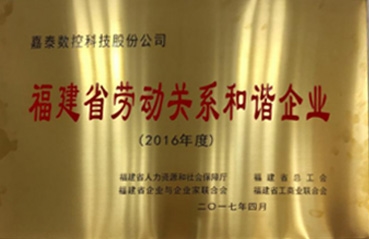 嘉泰數(shù)控:被授予“福建省勞動(dòng)關(guān)系和諧企業(yè)”榮譽(yù)稱號(hào)