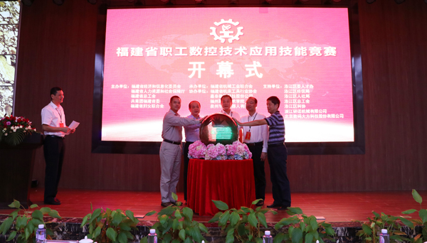大賽由福建省經(jīng)濟(jì)和信息化委員會(huì)、福建省人力資源與社會(huì)保障廳、福建省總工會(huì)、共青團(tuán)福建省委、福建省婦女聯(lián)合會(huì)聯(lián)合主辦,福建省機(jī)械工業(yè)聯(lián)合會(huì)承辦,福建省機(jī)床工具行業(yè)協(xié)會(huì)、嘉泰數(shù)控科技股份公司、福州職業(yè)技術(shù)學(xué)院、泉州華數(shù)機(jī)器人有限公司共同協(xié)辦,同時(shí)本次大賽也得到了泉州市洛江區(qū)人才辦、洛江區(qū)經(jīng)信局、洛江區(qū)人社局、洛江區(qū)科協(xié)、浙江研諾機(jī)械有限公司、北京數(shù)碼大方科技股份有限公司的大力支持! 2017年福建省職工數(shù)控技術(shù)應(yīng)用技能競(jìng)賽的開(kāi)幕式于2017年10月25日上午在嘉泰數(shù)控科技股份公司辦公大樓多功能會(huì)議室召開(kāi)。福建省經(jīng)信委黨組副書(shū)記、副主任梁偉新,福建省人社廳副廳長(zhǎng)、公務(wù)員局局長(zhǎng)胡忠昭,福建省婦聯(lián)副巡視員鄭元福,福建省機(jī)械化工礦冶工會(huì)工作委員會(huì)主任王華(副廳級(jí)),泉州市副市長(zhǎng)洪自強(qiáng)等領(lǐng)導(dǎo)以及專(zhuān)家、裁判、參賽選手、媒體記者等200多人出席了開(kāi)幕式。開(kāi)幕式結(jié)束后,與會(huì)各級(jí)領(lǐng)導(dǎo)嘉賓參觀巡視了正在進(jìn)行的大賽實(shí)操現(xiàn)場(chǎng)。
