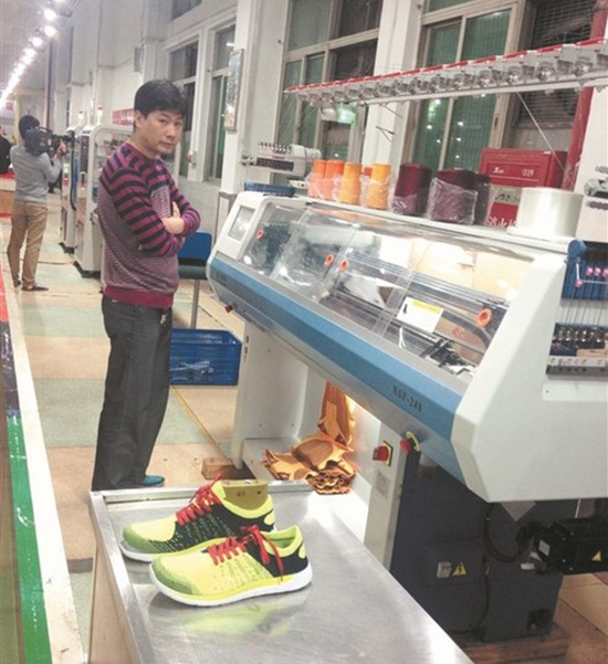 智能化鞋面橫機一次編織成型生產(chǎn)效率是人工的5倍 采用傳統(tǒng)的鞋面生產(chǎn)工藝作業(yè),人均每小時生產(chǎn)3雙鞋面,而一體鞋面機平均每小時的產(chǎn)量為15雙,這就是飛藝織造公司剛剛買進的野馬牌3D智能化針織鞋面橫機的“威力”。 這款由南安市南星工業(yè)機械有限公司投入批量生產(chǎn)的“數(shù)控一代”產(chǎn)品,顛覆傳統(tǒng)鞋面生產(chǎn)工藝,拋棄了傳統(tǒng)鞋面工藝的大量裁剪縫合工序,鞋面一次整體編織成型,同時可節(jié)約大量邊角廢料和勞動力。 安上四錠不同顏色的紗線,開啟機器,“噠噠噠”,不一會兒,一張張成型的彩色鞋面就源源不斷地“吐”出來,昨日記者親眼目睹了野馬牌3D智能化針織鞋面橫機的“魔力”?,F(xiàn)場技術(shù)人員拿起一組鞋面,捏一捏,告訴記者:“你瞧,很輕便、透氣、舒適,可以根據(jù)要求個性定做,迎合目前時尚新穎的消費潮流?!?br /> 據(jù)南星公司相關(guān)負責(zé)人張明介紹,經(jīng)過為時一年的研發(fā),野馬牌鞋面橫機已完成定型并交付客戶使用,公司摸索出一套完整成熟的鞋面打版、編織、后整工藝,可為客戶提供有力的技術(shù)支持。據(jù)介紹,這臺新設(shè)備實現(xiàn)多項技術(shù)創(chuàng)新,比如,成型設(shè)定支持鞋面特性工藝,直觀、快速地生成制版系統(tǒng)鞋面花樣;花樣解譯自動優(yōu)化,可以自動分析機器參數(shù),對花樣編織優(yōu)化處理,縮短編織時間;通過擁有專利技術(shù)的升降式沉降片控制,能夠根據(jù)編織需要,精準控制沉降片工作的力度,良好輔助脫圈;而快速回轉(zhuǎn)技術(shù)的應(yīng)用,輕便的6英寸機頭配合快速回轉(zhuǎn)功能,可以使效率提高10%以上。 “用戶使用我們的專用打版軟件設(shè)計鞋面花型,機器根據(jù)花型程序自動完成鞋面編織,自動化程度高,一人可同時操作10臺機器。”張明說,已經(jīng)與泉州飛藝織造公司簽訂100臺訂單,預(yù)計今后可完成年產(chǎn)400臺以上的生產(chǎn)規(guī)模。這款設(shè)備價格僅為同類進口機器的三分之一,而跟國內(nèi)同類型機器相比,野馬機具有運轉(zhuǎn)速度快、功能豐富、編織穩(wěn)定的特點。 ![]() 機器人挑戰(zhàn)惡劣工作環(huán)境 汽配產(chǎn)品精確度更高 “你看她的右手小手指頭短了一截,就是此前不小心被機器壓壞了?!迸阃浾邊⒂^鯉東汽配公司車間的經(jīng)理吳麗梅,指著一位正在忙碌的女工說,汽配制造企業(yè)的沖壓環(huán)節(jié),工人要眼疾手快,否則一不留神手就會被機器夾進去。 不過,隨著機器人投入使用,這種擔(dān)心已經(jīng)成為多余。在鯉東汽配公司精密汽車配件生產(chǎn)車間里,由12臺沖壓線機器人、2臺焊接線機器人、2臺噴漆線機器人組成的工業(yè)流水生產(chǎn)線已經(jīng)適應(yīng)生產(chǎn)流程。工作人員只需按動幾個開關(guān),三條機器人生產(chǎn)線便能機械化轉(zhuǎn)動,精確作業(yè),大大提高企業(yè)生產(chǎn)的安全性和生產(chǎn)效率,有效節(jié)省人力成本。 現(xiàn)場一名男性工作人員笑嘻嘻地說,原來一個工人上班八個小時,只能沖壓500個部件,用機器人,可以沖壓1200個,人還輕松多了。 以機器人取代人,好處不僅僅是效率提高了,還解決臟活累活難題。就拿焊接環(huán)節(jié)來比較,焊接的工作交給機器人,兩臺機械手臂流暢地對配件進行點焊作業(yè)?!霸谑覂?nèi)焊接不僅有輻射,還有焊霧粉塵污染,長時間工作對人體損害不小?!眳躯惷窂漠a(chǎn)品筐里隨手拿起一個部件說,采用機器人后,不僅效率大大提高,而且焊接質(zhì)量都達到一樣的標準,不會出現(xiàn)人工誤差。特別是以往焊接大型配件時,需要幾個工人連續(xù)工作,勞動強度太大?!霸谏a(chǎn)車間的噴漆生產(chǎn)區(qū)域,甚至可以實現(xiàn)無人化自動操作?!眳躯惷方榻B,工人不用直接跟油漆打交道,因為高危環(huán)境和高強度工作,機器人都能勝任。 在鯉東汽配公司董事長蔡榮泰看來,生產(chǎn)環(huán)節(jié)大規(guī)模上馬機器人是大勢所趨,也是機遇所在。據(jù)了解,這家專門從事變速箱等汽車精密配件生產(chǎn)的企業(yè),已經(jīng)成為華晨寶馬、上海大眾、江鈴等知名汽車制造企業(yè)的供應(yīng)商,面對客戶越來越嚴格的產(chǎn)品精度要求,蔡榮泰也意識到機器取代人勢在必行?!翱蛻魧ξ覀兊纳a(chǎn)環(huán)境要求越來越高,而機器人的精確度是人工無法比擬的。”蔡榮泰直言,市政府出臺政策大力推廣“數(shù)控一代”產(chǎn)品應(yīng)用,在降低企業(yè)使用本土生產(chǎn)的“數(shù)控一代”產(chǎn)品成本壓力的同時,又拓展了“數(shù)控一代”制造企業(yè)的市場空間,或?qū)⒁l(fā)一波機器取代人的浪潮。 引進自動化柔性制鞋生產(chǎn)線 人機PK大賽機器完勝 ![]() 一邊是人工放料、涂刷,然后放一旁晾干,一邊是電腦自動一條龍完成投料、噴涂、烘干,昨日記者在特步公司位于泉州開發(fā)區(qū)的制鞋車間內(nèi),目睹熟練女工傳統(tǒng)手工印線與數(shù)控一代自動印線機之間的一場PK。 成本 機器節(jié)省三分之一油墨 “自動印線機完成一雙面網(wǎng),需要的油墨比人工操作可以節(jié)省三分之一。”現(xiàn)場技術(shù)人員介紹,綜合來看,人工印線過程中,制作網(wǎng)版需要木材,需要前期網(wǎng)沙人員,定期清洗網(wǎng)版還將造成水資源污染;而引